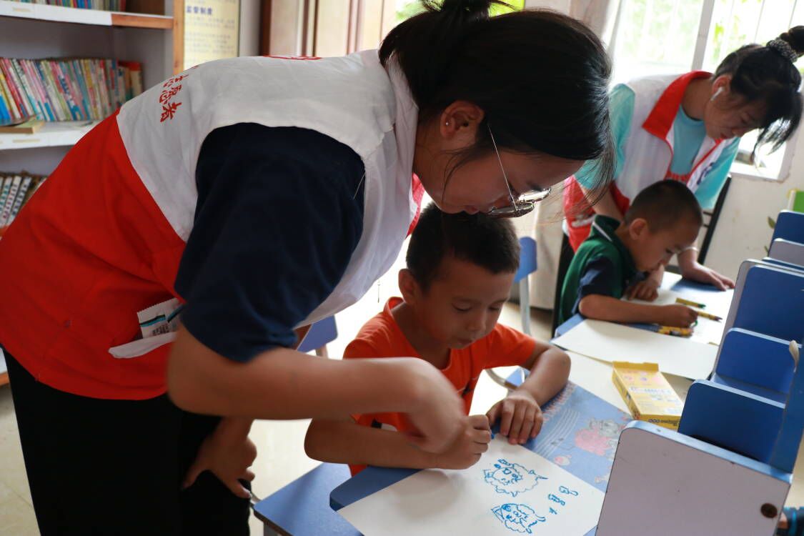 上午10时,实践团成员结合专业特长在兴隆村儿童之家开展义务支教活动,本次义务支教活动的主要课程是基础绘画,授课对象是村里的留守儿童。课前,实践团成员将提前准备好的水彩笔、画纸等绘画用品发给小朋友们。课堂上,实践团成员走上讲台化身老师进行绘画授课。授课老师认真负责,语言生动,内容突出。小朋友们认真听课,积极参与课堂互动,课堂氛围轻松和谐。课后,实践团成员指导小朋友们完成课后作业。此外,实践团除了进行基础绘画课授课,还对小朋友们进行了安全教育和心理辅导。