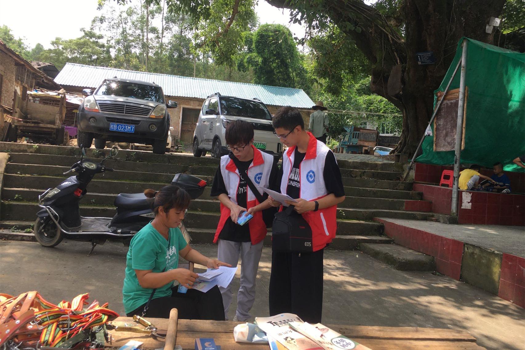 实践团成员向群众讲解劳动法、未成年人保护法、城乡居民养老保险政策