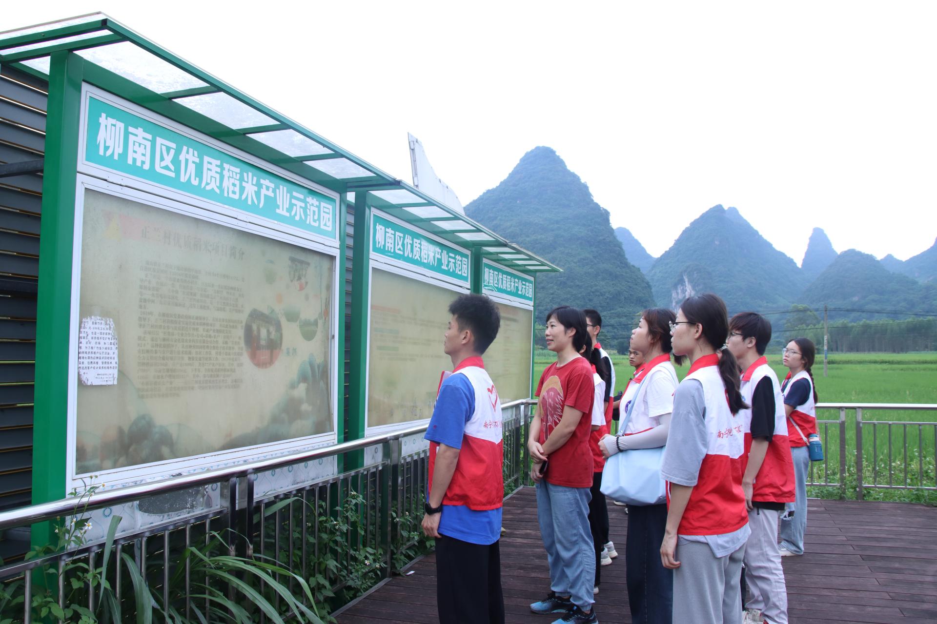 7月10日,实践团来到柳南区优质稻米产业示范园。了解到在政府的正确领导下,在农业农村局的具体指导下,示范园以“村集体+专业合作社+公司+基地+农户”为项目,引导正兰村的群众参与优质稻种植,创造了正兰村独有的优质稻米品牌,为当地巩固脱贫攻坚成果与乡村振兴做出巨大贡献。