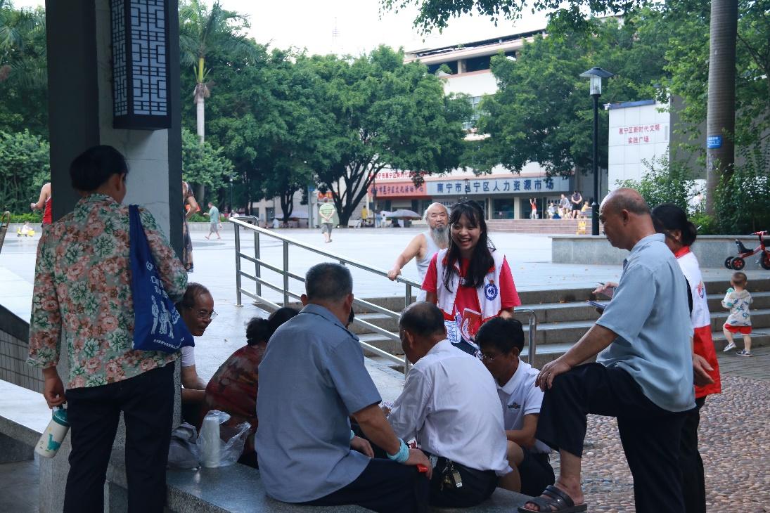 反诈实践团为广场老年群众宣讲反诈骗知识