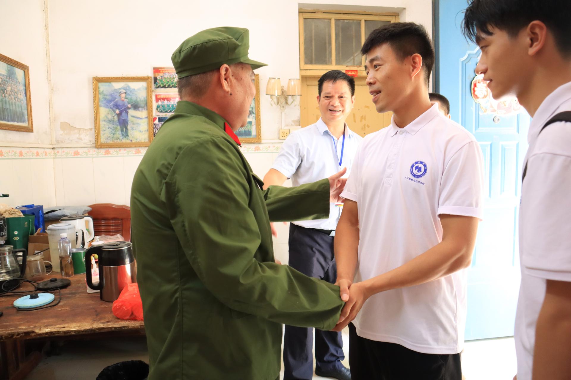 离开烈士陵园后,实践团来到了刘福勋老兵家中拜访,并受到他热情接待。老兵刘福勋虽年事已高,但身体健康、精神矍铄,他饶有兴致的给同学们讲述着往昔的峥嵘岁月。同学们认真聆听他当年的英勇事迹,再一次感受到他的豪情壮志和无畏勇气。通过老兵刘福勋的口述,实践团成员们更加深刻地理解了和平生活的来之不易,临走时所有成员再次对老兵表达了敬意。