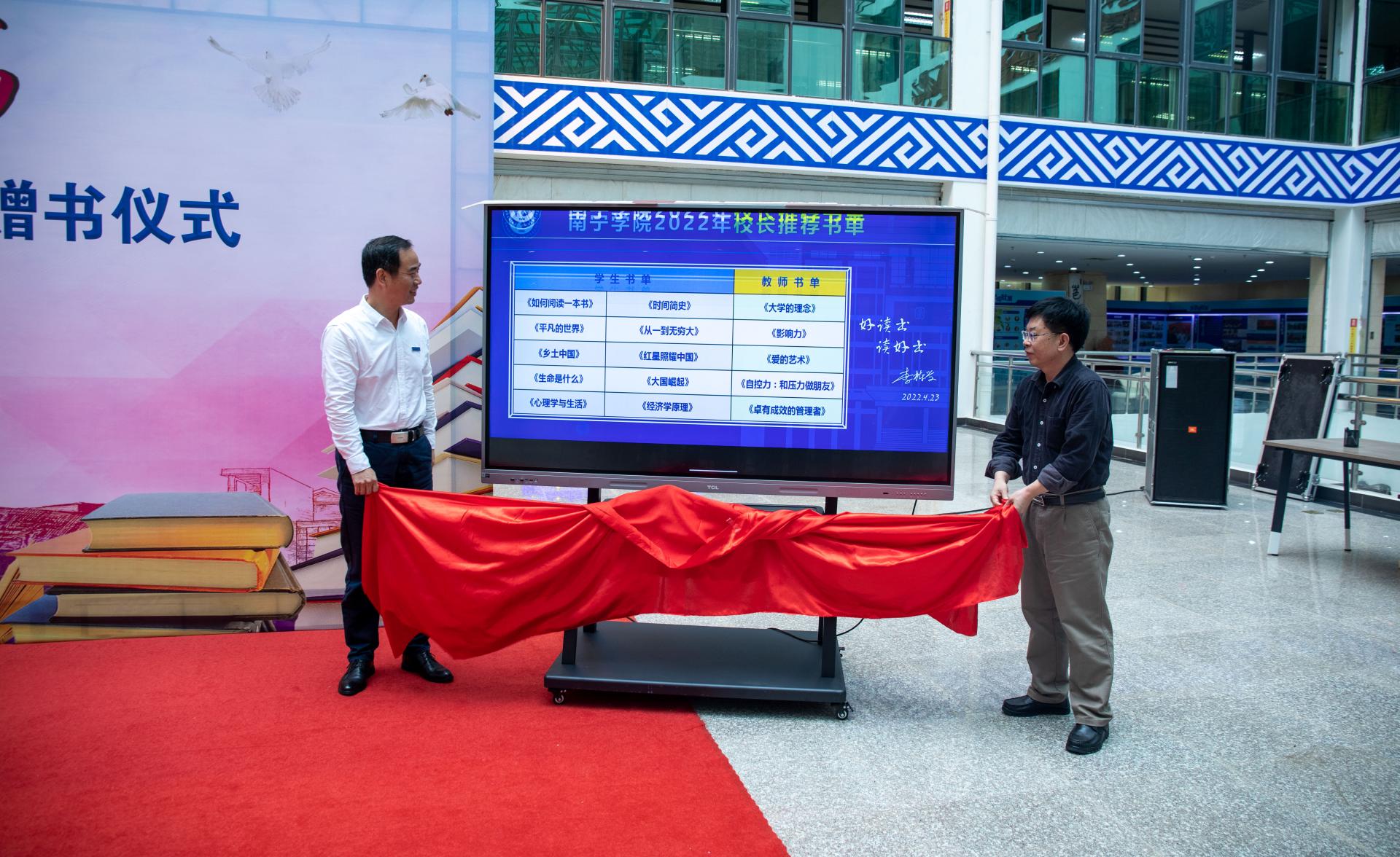 刘彪书记、李栋学校长为“校长荐书书单”揭幕