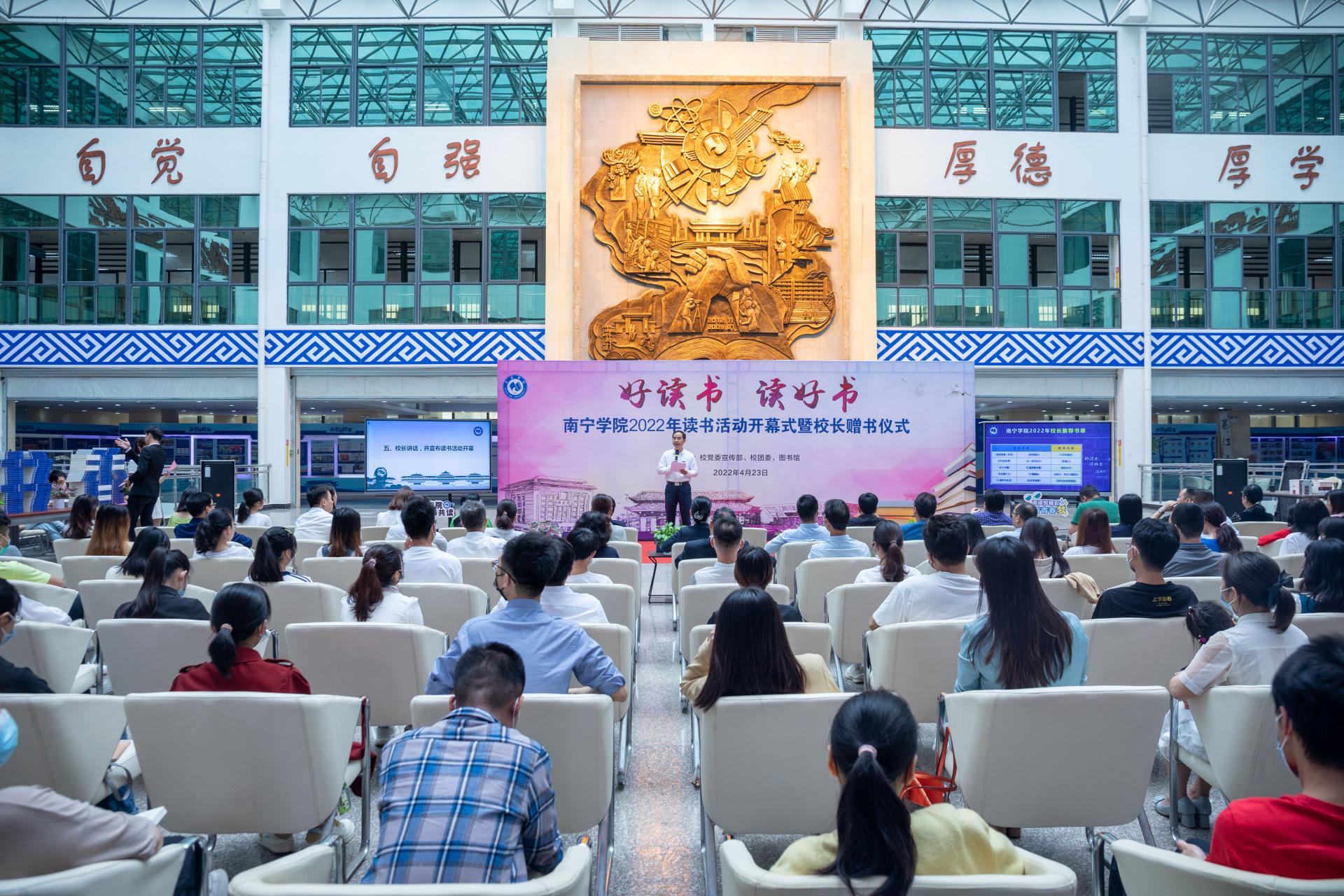 温馨校园,宁静求学;悠悠南院,淡淡书香。在第27个世界读书日将到来之际,kaiyun体育网页登录入口2022年读书活动开幕式暨校长赠书仪式于4月23日上午在学校图书馆二楼中庭举行,拉开了主题为“好读书读好书”系列读书活动的序幕。学校领导及师生代表120余人参加活动。