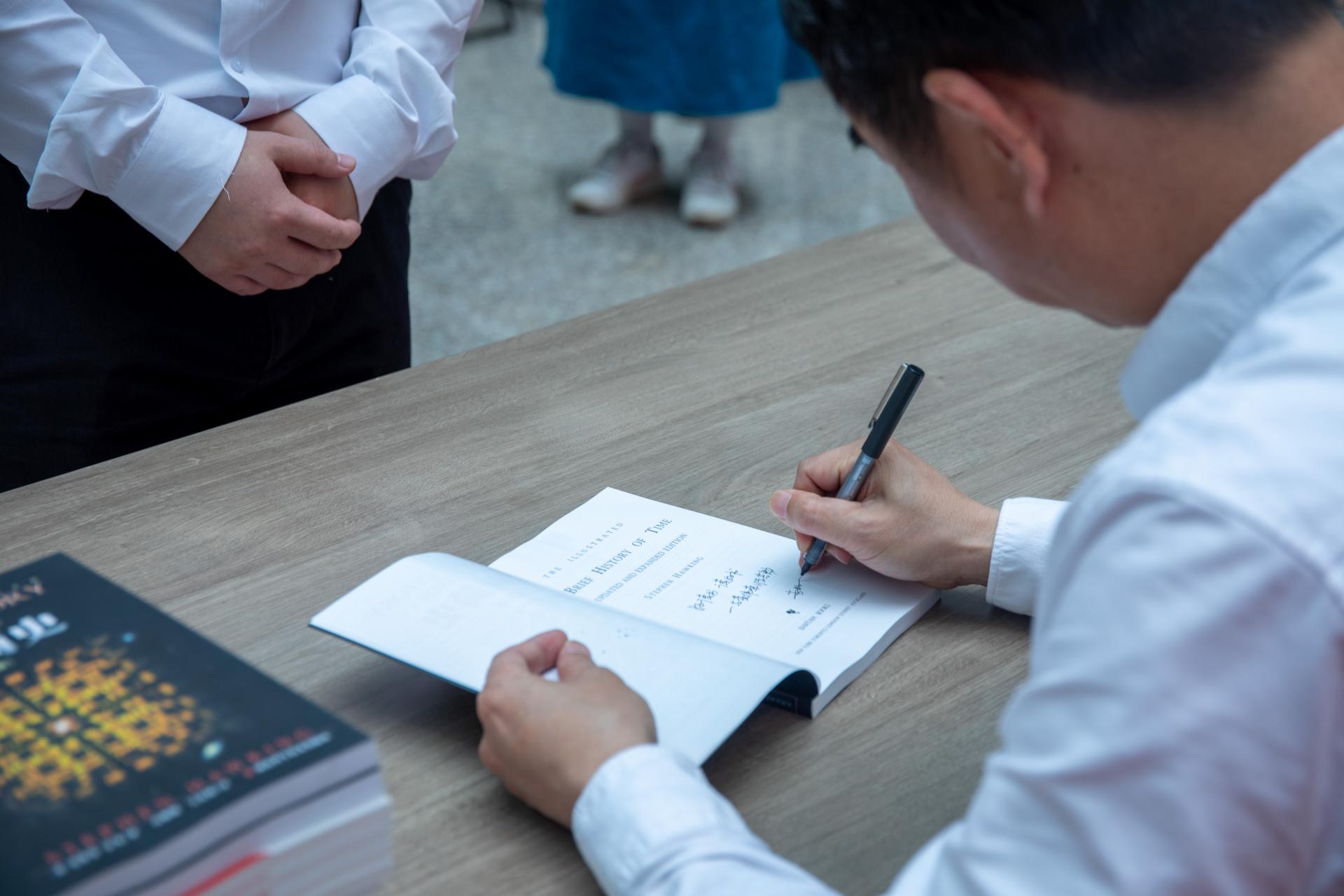 李栋学校长在活动现场为同学们签字赠书