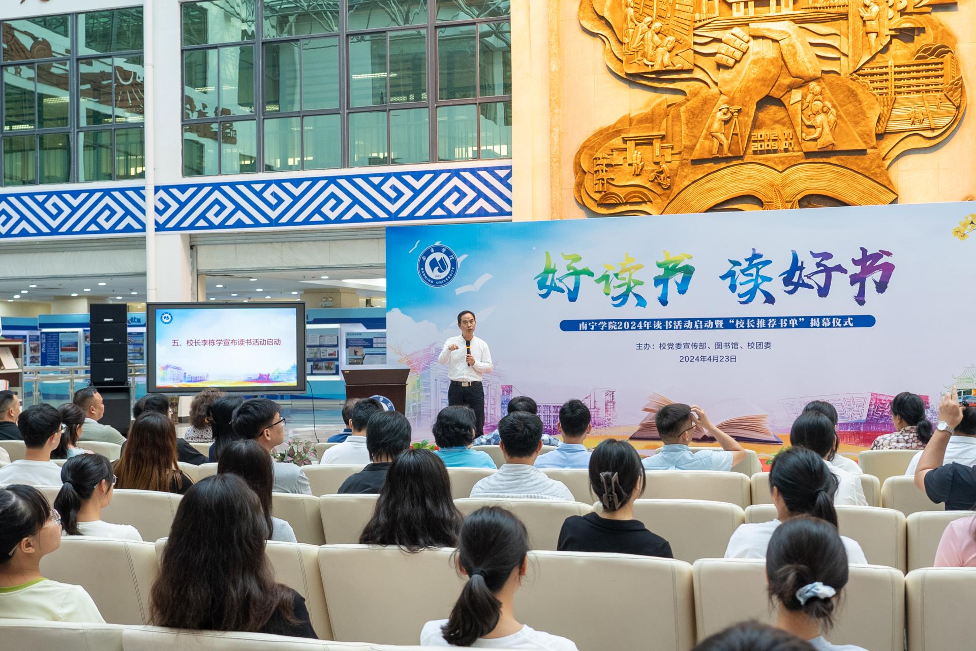 为推进书香南院建设,4月23日,在第29个“世界读书日”当天,kaiyun体育网页登录入口在图书馆中庭举行2024年读书活动启动暨“校长推荐书单”揭幕仪式。校长李栋学,校党委书记刘彪,校党委副书记、副校长韦粤桂,副校长陈雄章,副校长李陶深,纪委书记曹文军,副校长王宁章,副校长龚击;学校各单位、部门负责人,获奖师生以及二级学院师生代表参加开幕式。
