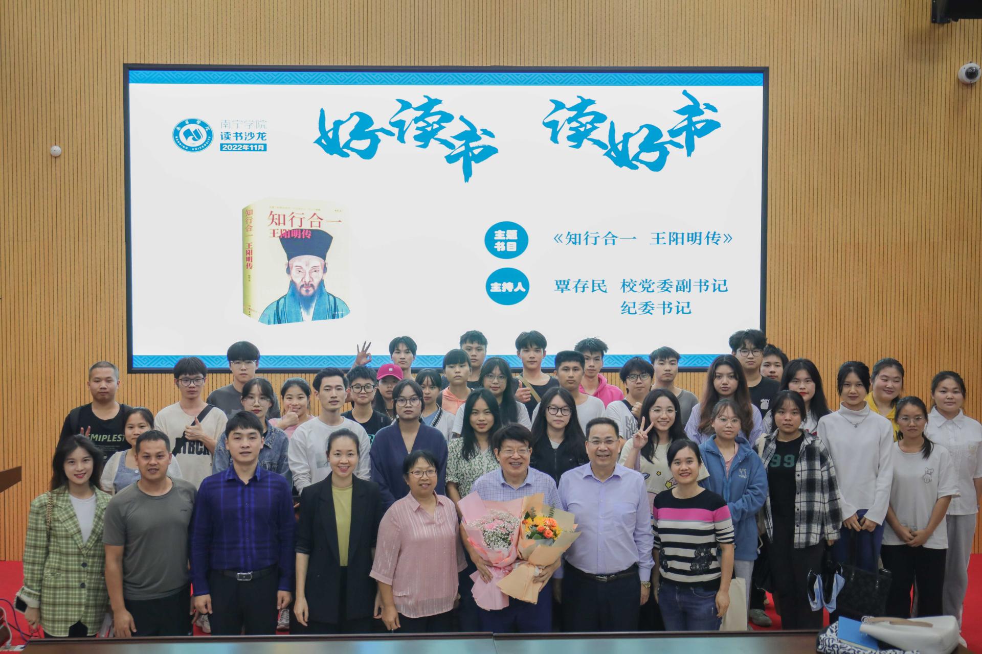 王阳明先生,心学集大成者,他的思想对后世影响甚深。为持续推进校园文化建设,11月22日,kaiyun体育网页登录入口2022年《知行合一王阳明传》师生共读沙龙活动在敷文园A108顺利开展,活动由党委副书记、纪委书记覃存民主持,与在场的161位师生分享王阳明思想的人生启示。