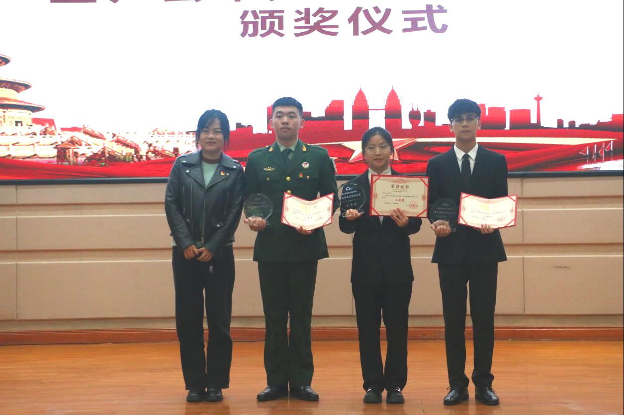 学院团委书记韦丹为获得三等奖的选手颁奖