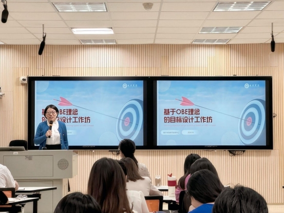 随后,学院党总支副书记、副院长张雪娇以《基于OBE理念的目标设计》为主题进行专题培训,从目标设计流程、目标设计原则和方法、目标达成评价方法三个方面对如何基于OBE 理念的目标设计进行了深入浅出的阐释和说明。她强调,教师们要与时俱进,实时更新教育教学观,以严谨教风带动学风、用优良作风促进学风,推动学院内涵式高质量发展。