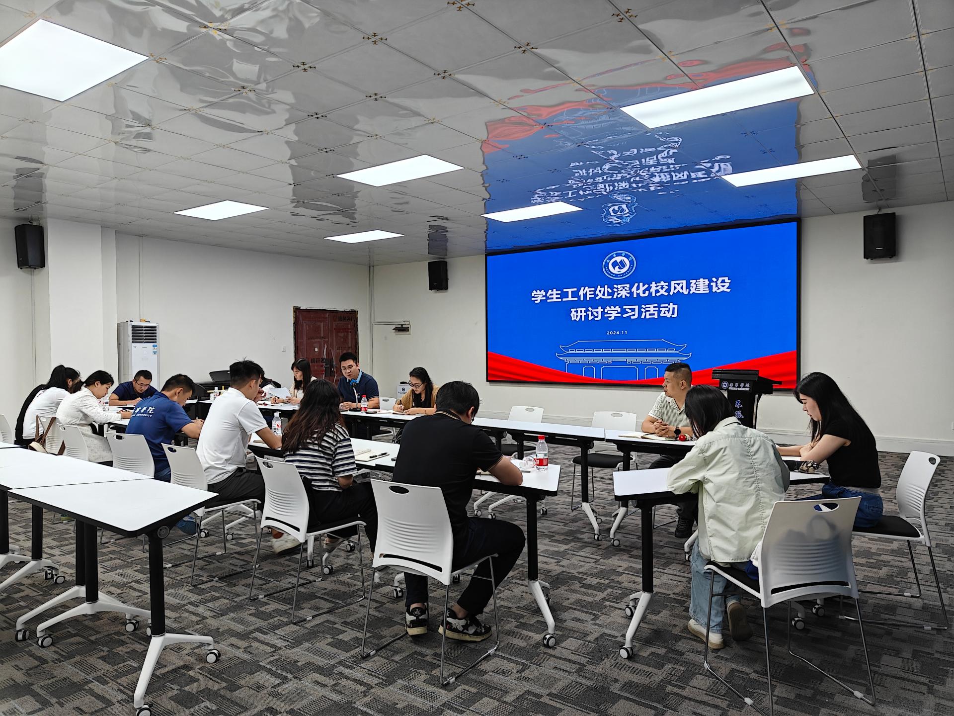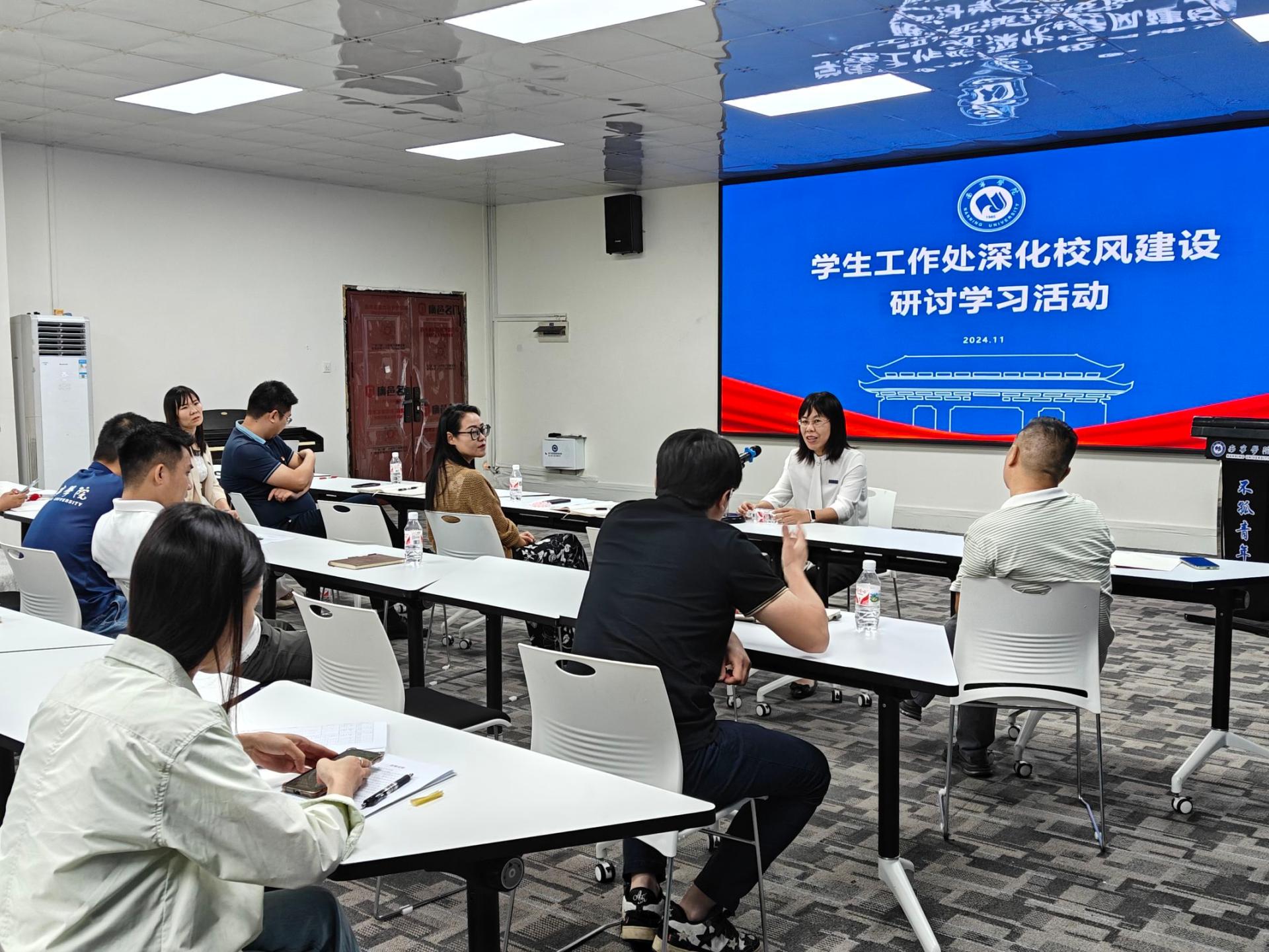 为落实学校校风建设动员部署会会议精神,进一步统一思想认识,强化责任意识,推动管理人员充分参与校风建设,11月13日下午,学生工作处、校团委全体人员在大学生活动中心202会议室开展了深化校风建设研讨学习活动。活动特别邀请了资产处处长黄丽军参加,学生工作处处长王静静在会上主持。