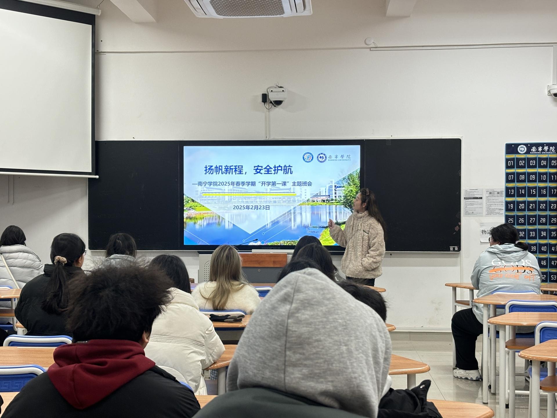 为了确保学生能以饱满的热情和充足的准备迎接新学期的挑战,3月23日,教育学院在敷文园F各班教室开展了以《扬帆新程,安全护航》为主题的“开学第一课”班会活动。此次班会活动由教育学院党总支副书记杨先春统筹,全体辅导员及班主任积极参与,在班会正式开展之前,教师队伍通过线上会议进行了深入的筹备工作,对班会各项内容进行了重点部署和细致规划,确保每位老师都清晰了解班会的核心要点与实施细节,为活动的顺利进行奠定了坚实基础。