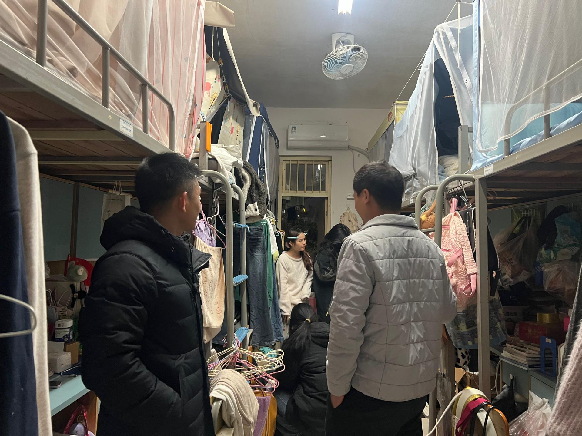 教育学院党总支副书记杨先春和班主任马广勇老师走访学生宿舍