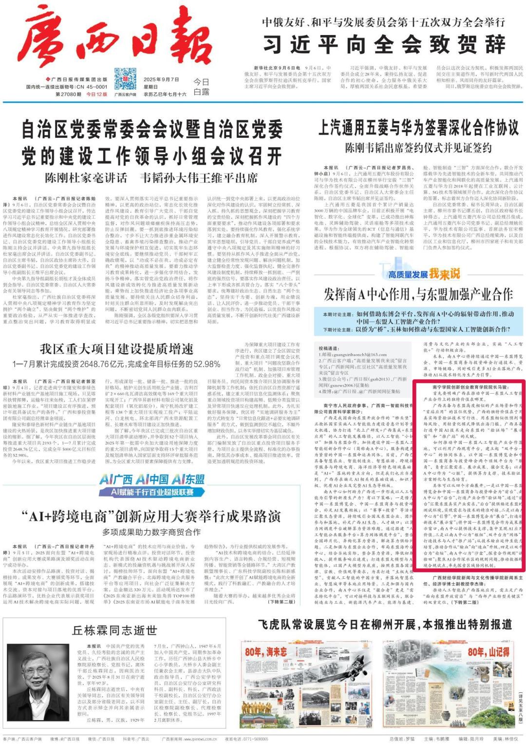 【媒体看南院】《广西日报》头版“高质量发展我来说”栏目刊发我校马骏教授稿件