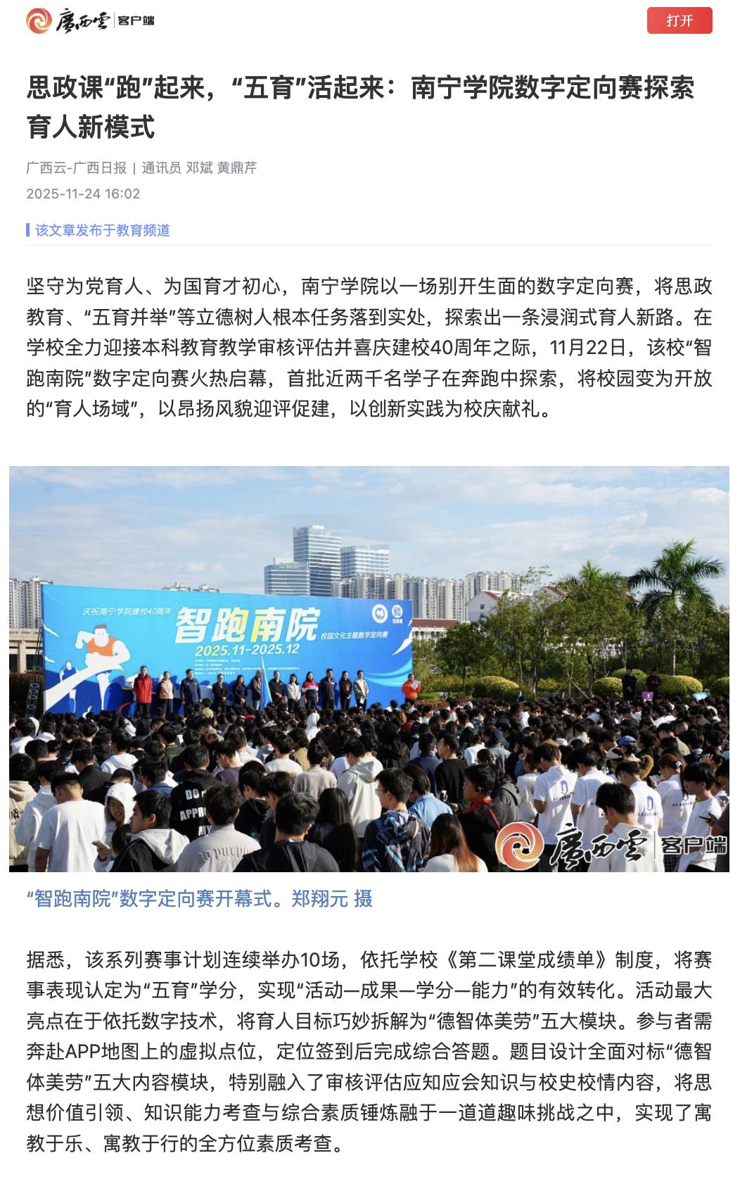 【媒体看南院】广西日报报道思政课“跑”起来,“五育”活起来:kaiyun体育网页登录入口数字定向赛探索育人新模式
