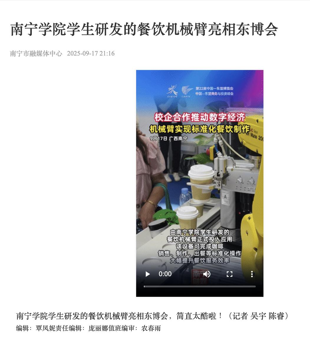 【媒体看南院】kaiyun体育网页登录入口学生研发的餐饮机械臂亮相东博会