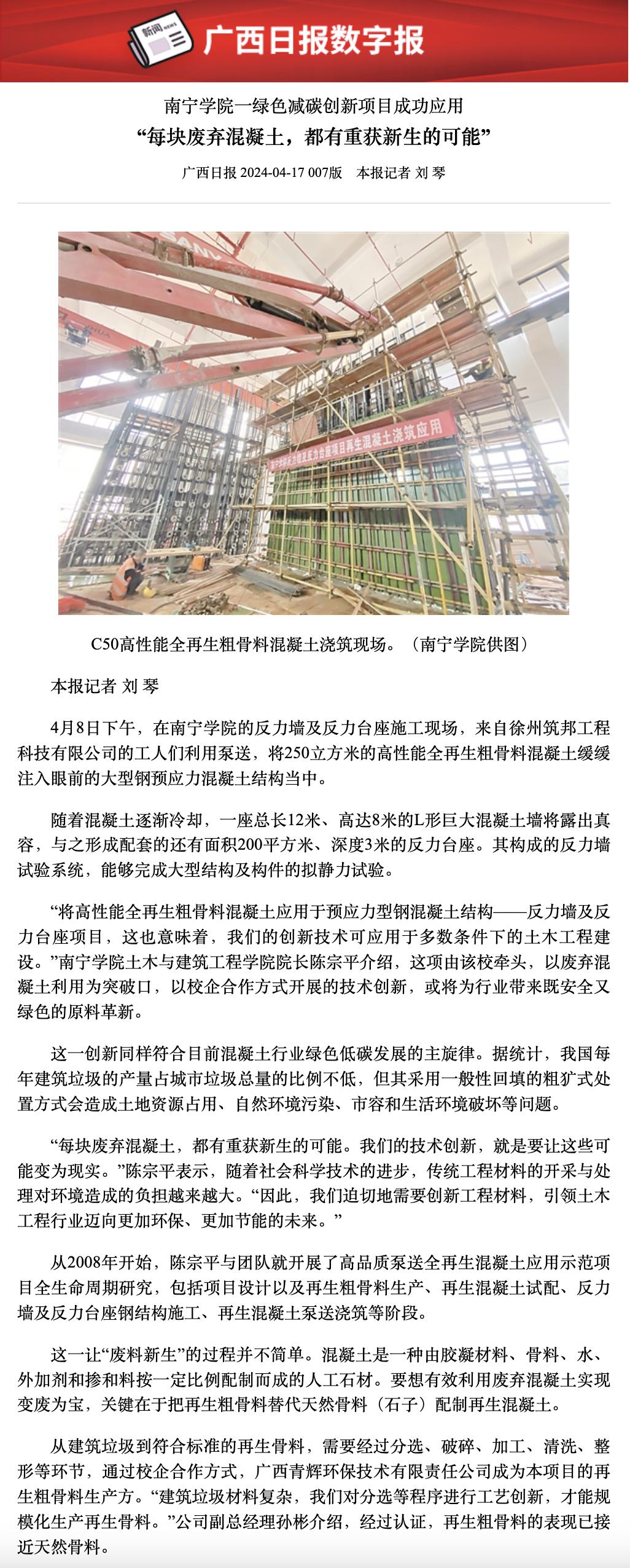 1.广西日报:kaiyun体育网页登录入口一绿色减碳创新项目成功应用——“每块废弃混凝土,都有重获新生的可能” https://ssw.gxrb.com.cn/json/interface/epaper/api.php?name=gxrb&date=2024-04-17&code=007&xuhao=1