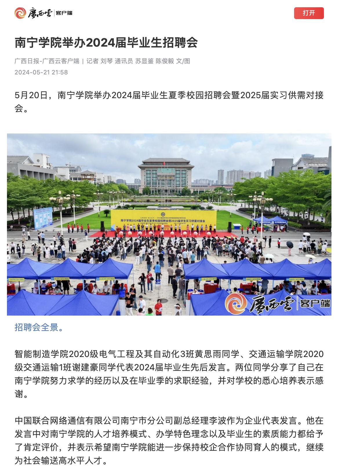 【媒体看南院】广西日报、南宁电视台等多家媒体报道我校举办2024届毕业生招聘会