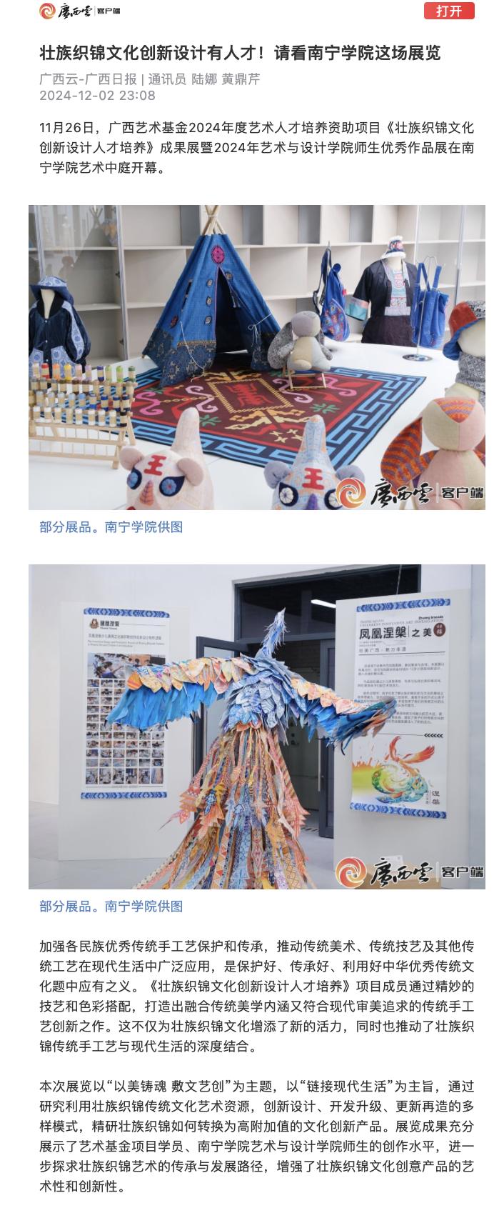 【媒体看南院】广西日报报道壮族织锦文化创新设计有人才!请看kaiyun体育网页登录入口这场展览