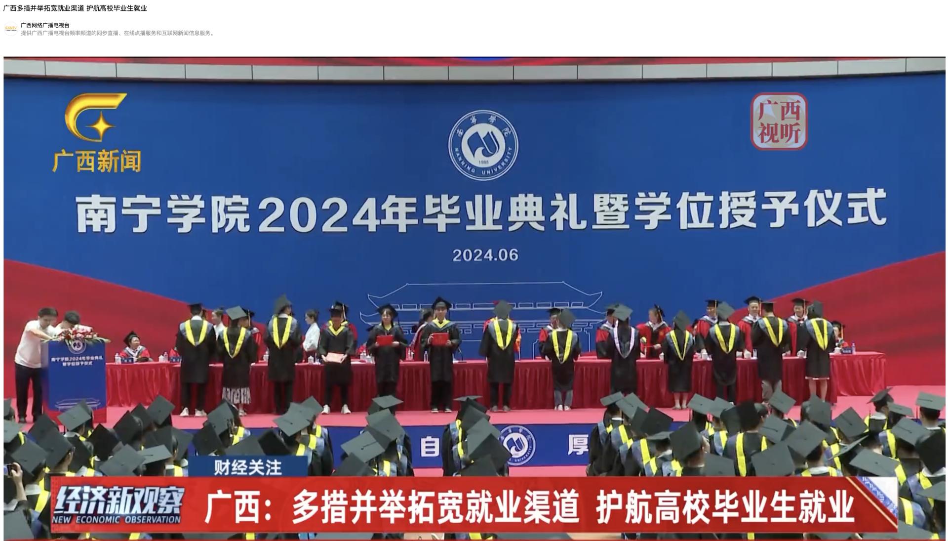 1.广西电视台:广西多措并举拓宽就业渠道 护航高校毕业生就业 https://h5.gxtv.cn/html/article/wapArticle.html?dataSource=0&objId=dbdd996a5d07406488a1720269c1689b