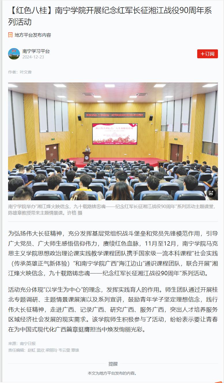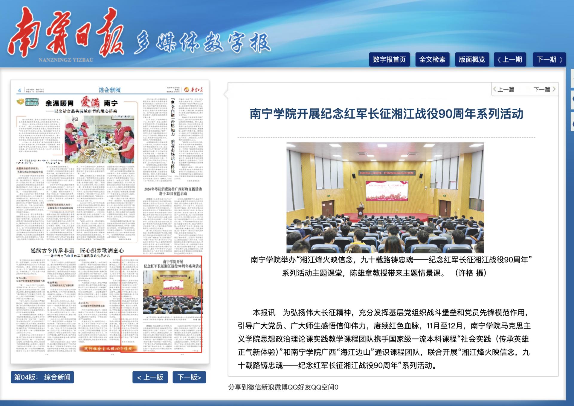 【媒体看南院】南宁日报、学习强国等平台报道kaiyun体育网页登录入口开展纪念红军长征湘江战役90周年系列活动