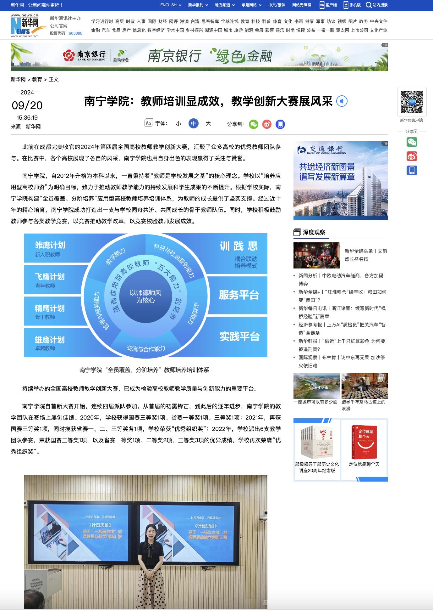 【媒体看南院】新华网报道kaiyun体育网页登录入口教师培训显成效,教学创新大赛展风采