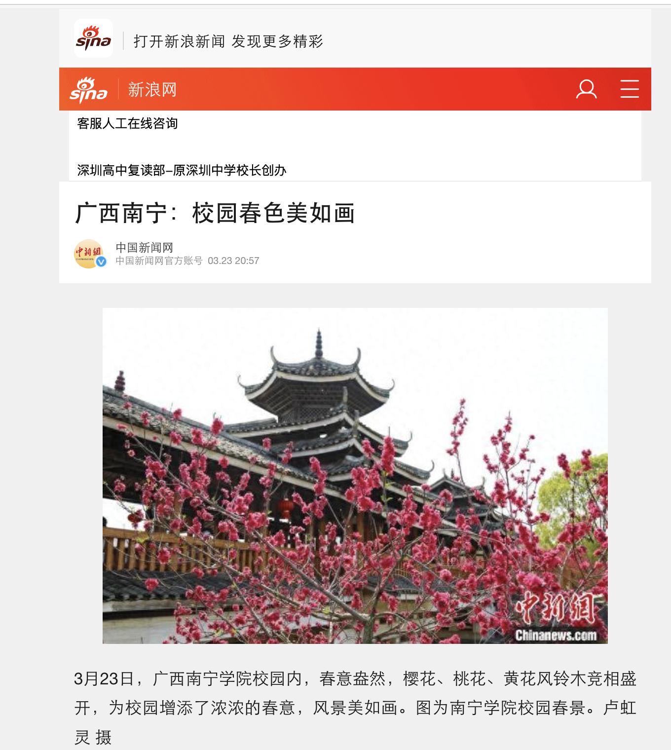 5.搜狐新闻网:广西南宁:校园春色美如画https://3g.k.sohu.com/t/n874273021?serialId=cb9b640952d9d60e1768e89479a5fa45&showType=874273021