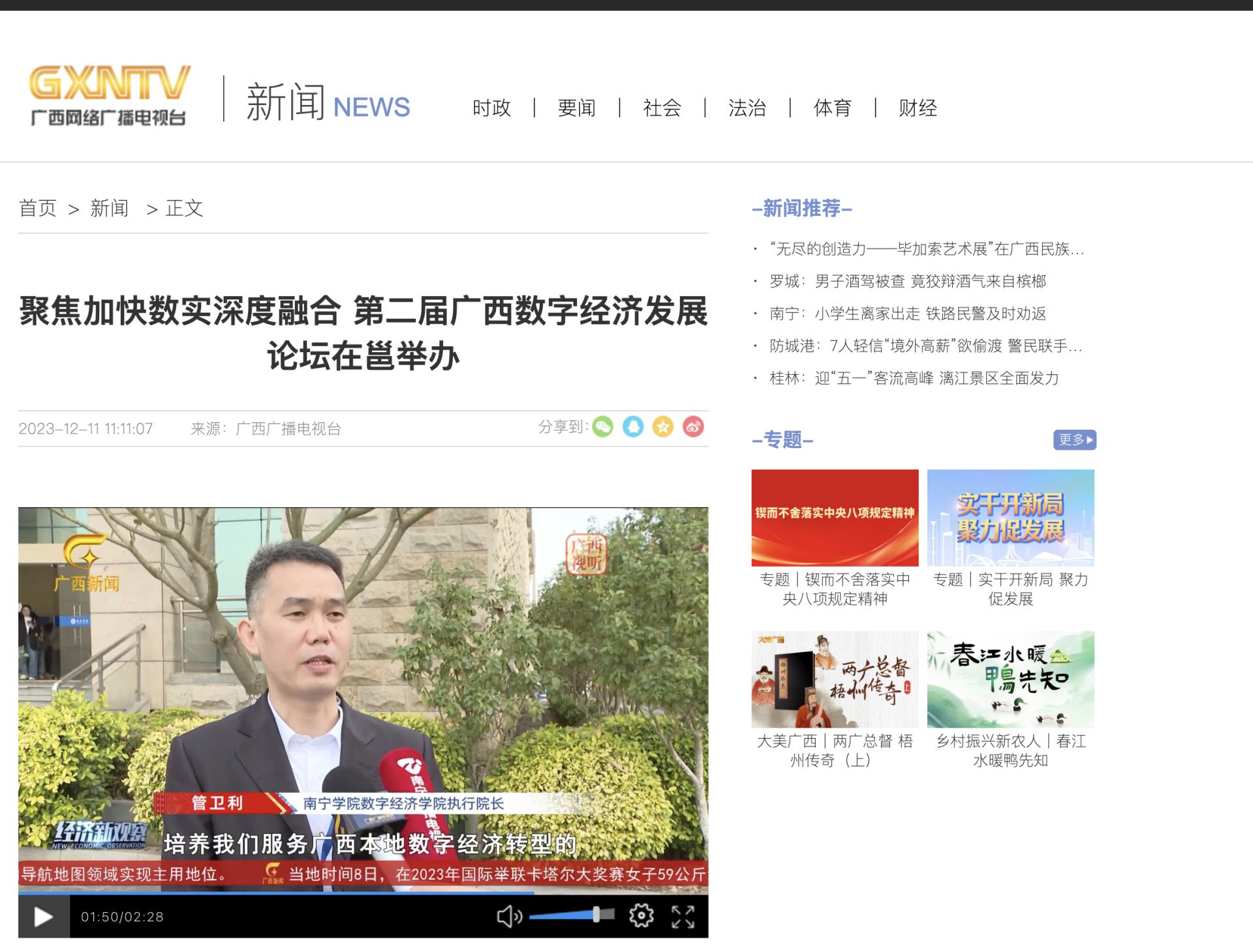 【媒体看南院】中国网、广西电视台、南宁电视台、南宁日报报道加快数实深度融合 促进经济转型升级 第二届广西数宇经济发展论坛在kaiyun体育网页登录入口举行