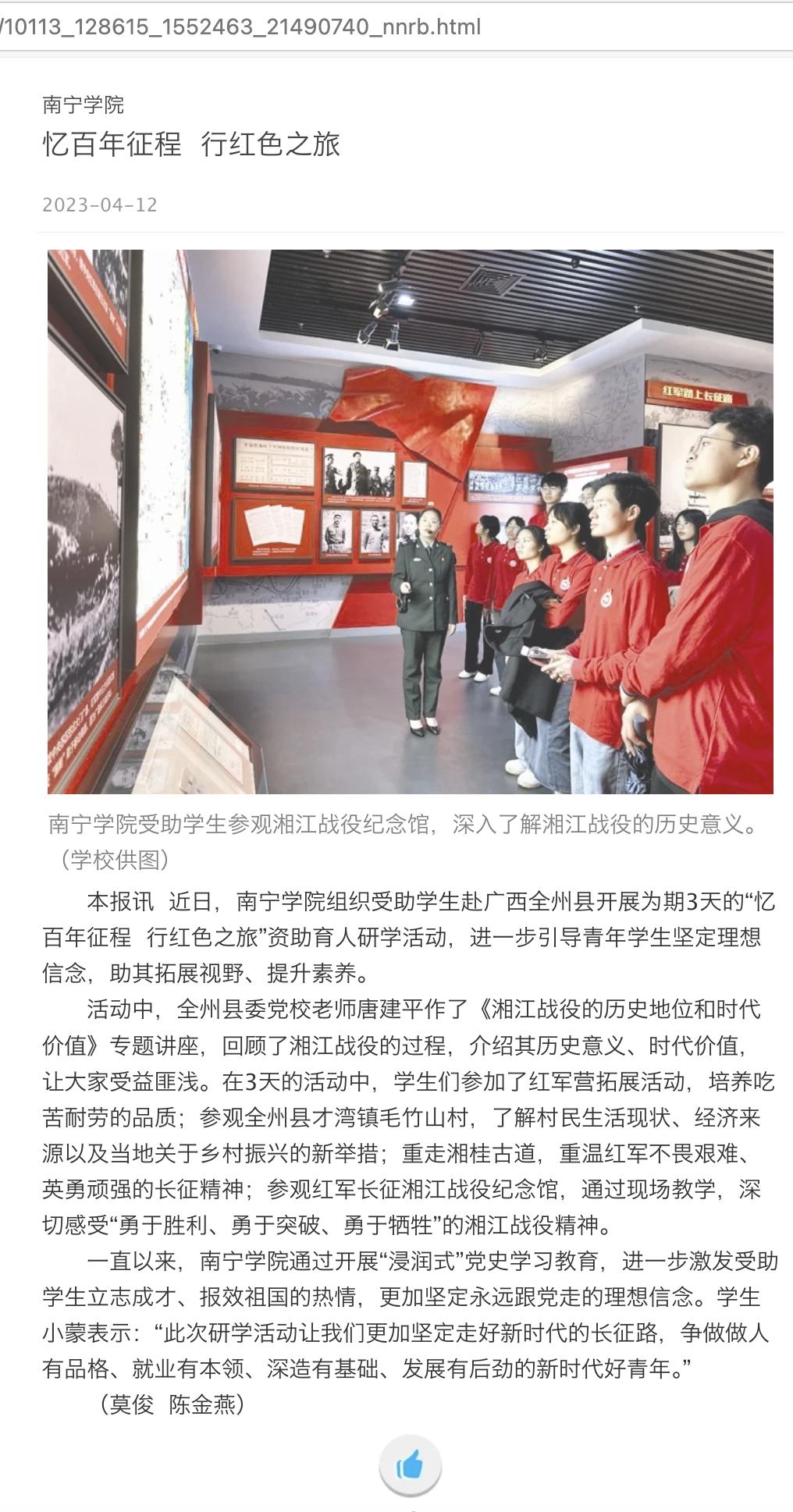 【媒体看南院】南宁日报报道kaiyun体育网页登录入口忆百年征程 行红色之旅